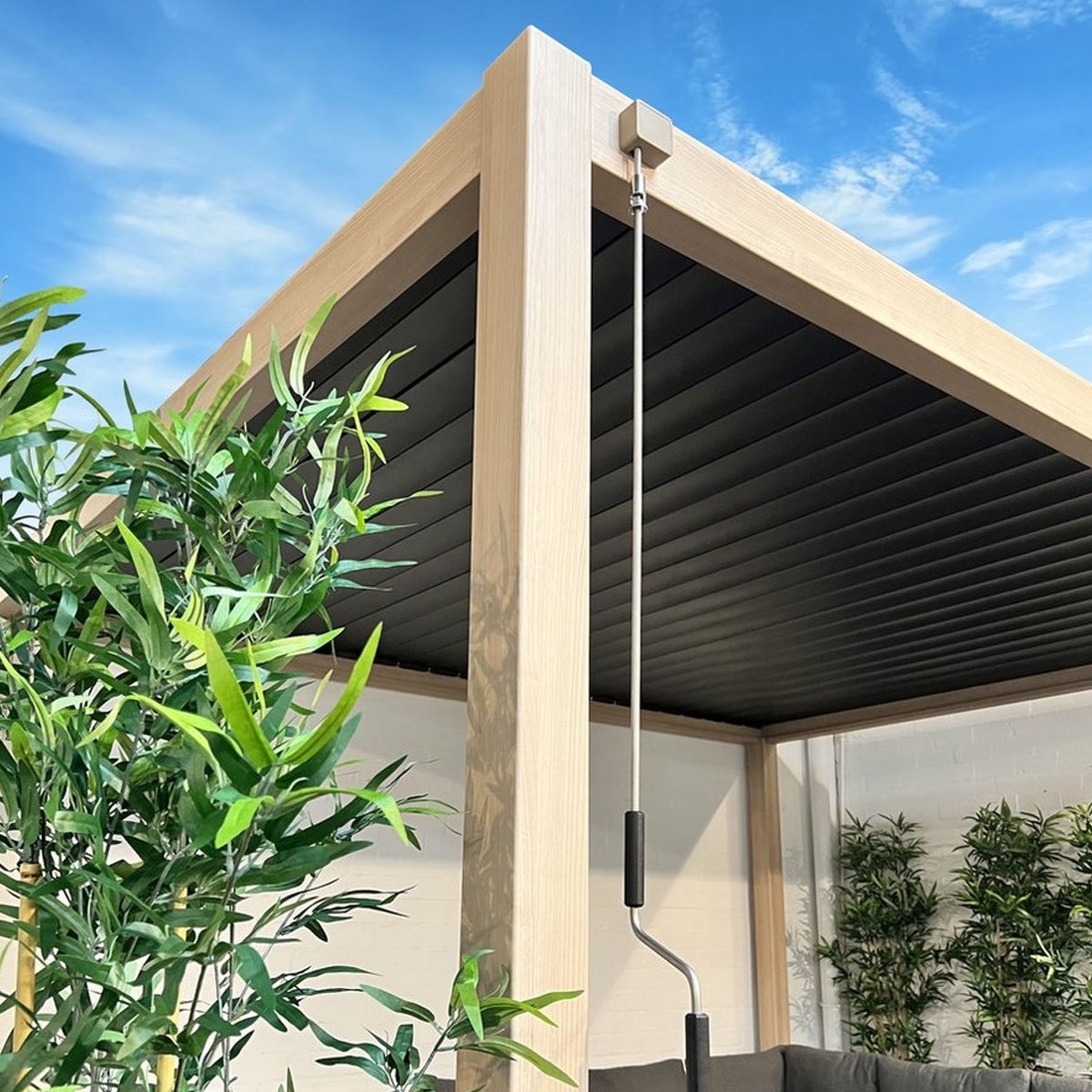 De Alumel lamellenoverkapping biedt luxe en ultieme functionaliteit in één product. Met de mogelijkheid om de lamellen te openen of te sluiten, kunt u genieten van het buitenleven, ongeacht het weer. Wanneer de overkapping gesloten is, biedt het een waterdichte bescherming, zodat u droog kunt blijven bij regenachtig weer. Het innovatieve geïntegreerde water afvoersysteem zorgt ervoor dat het water snel en gemakkelijk wordt afgevoerd.