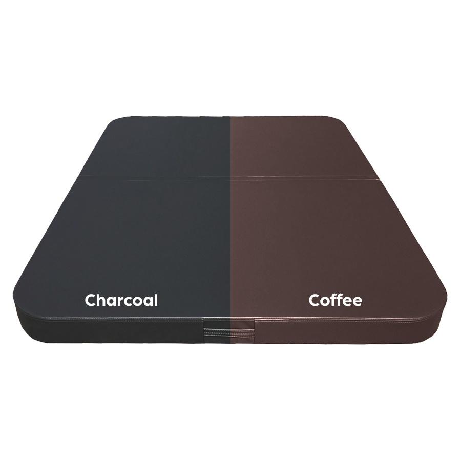 Onze covers zijn opgebouwd uit twee speciale platen van EPS isolatiemateriaal. Het binnenste gedeelte van de cover is 13 cm dik en het buitenste gedeelte 10 cm. Dat is gedaan zodat het regenwater er gemakkelijk vanaf kan lopen. Het isolatiemateriaal is verpakt in een waterdichte plastic hoes. Dat beschermt het materiaal tegen de indringing van vocht. De binnenkant van de hoes bestaat uit ventilerend zwembadgaas, waardoor het vocht altijd weer gemakkelijk uit de hoes kan. De cover beschikt over verschillende gespen die aan de spa gemonteerd kunnen worden. Vooral in kustprovincies waar het hard kan waaien is dat een extra bescherming. De covers worden standaard geleverd met twee handvatten, zodat u ze gemakkelijk op kunt tillen.